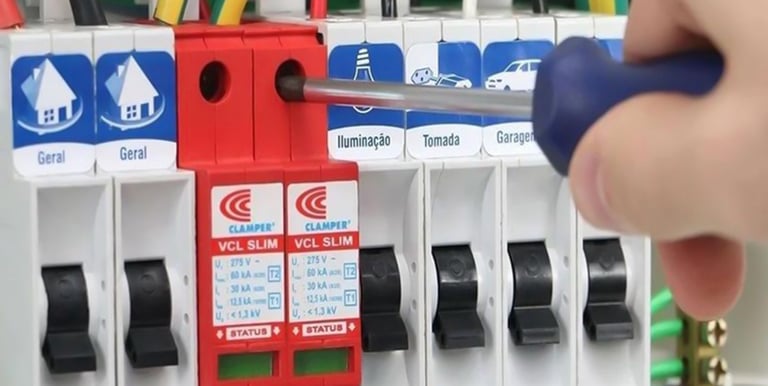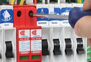 Projetos elétricos residenciais, comerciais, galpões, etc. Dimensionamento e cálculo de DPS tipo 1 e 2, garantindo segurança e eficiência.
